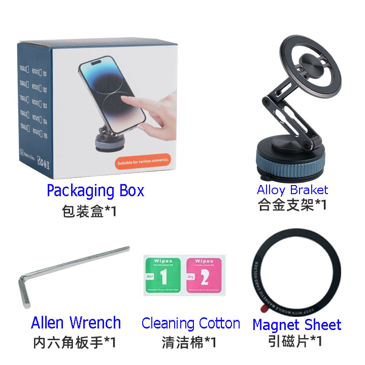 Magnetic Phone Holder Mount Rotating Three-Axis Alloy Folding Bracket Model:(AMO-105)