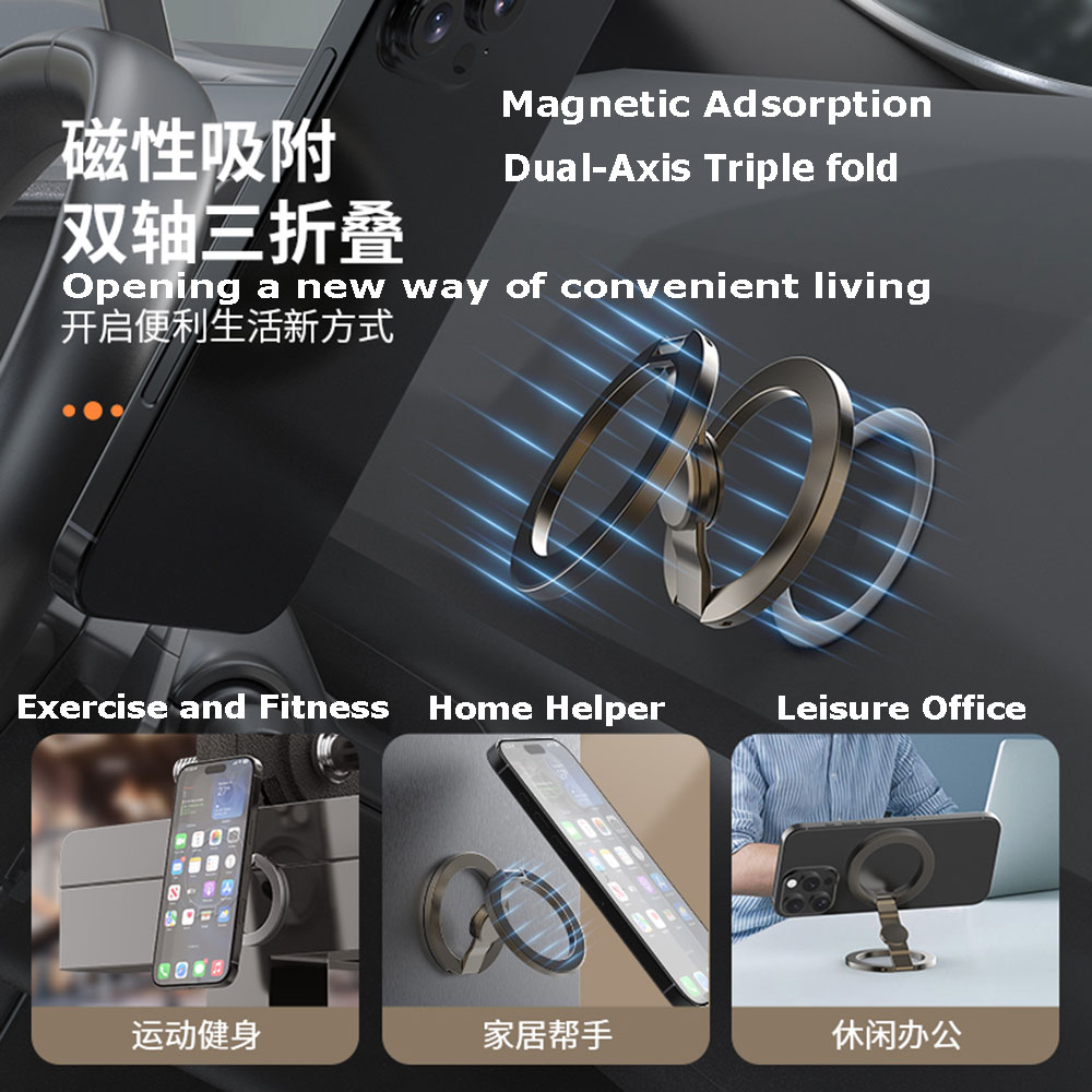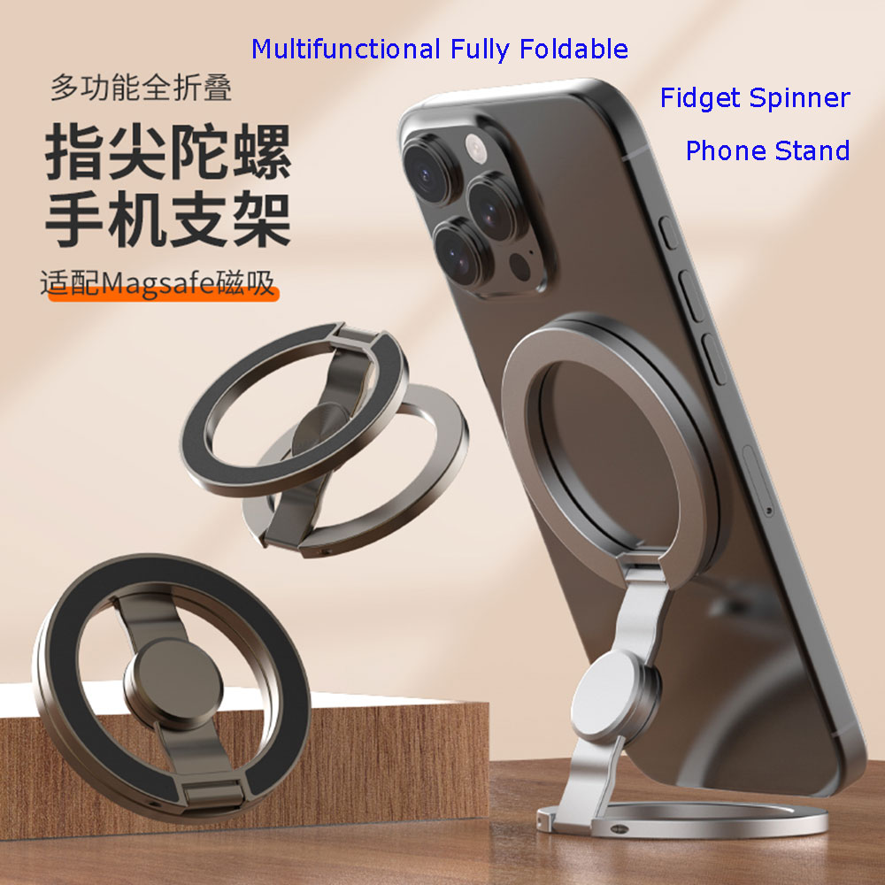 Magnetic Phone Stand Fidget Spinner Combo HandsFree Holder for iPhone MagSafe Cases – Dual Magnetic Rings, Strong Adhesion, Stress Relief Accessory for Home/Office/Travel/Gym